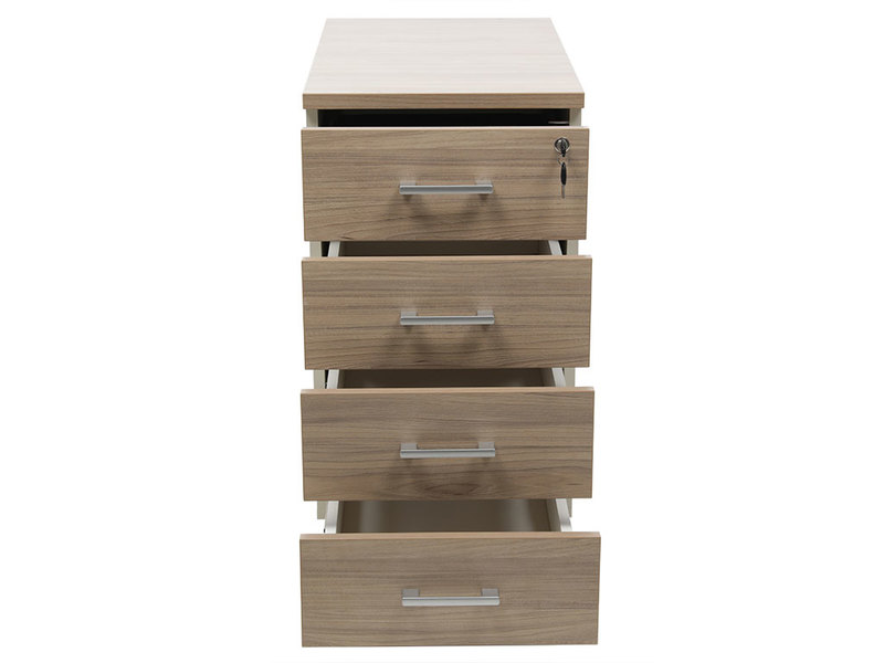 - тумба снабжена центральным замком и оснащена пластмассовым лотком для канцелярских принадлежностей в верхнем ящике